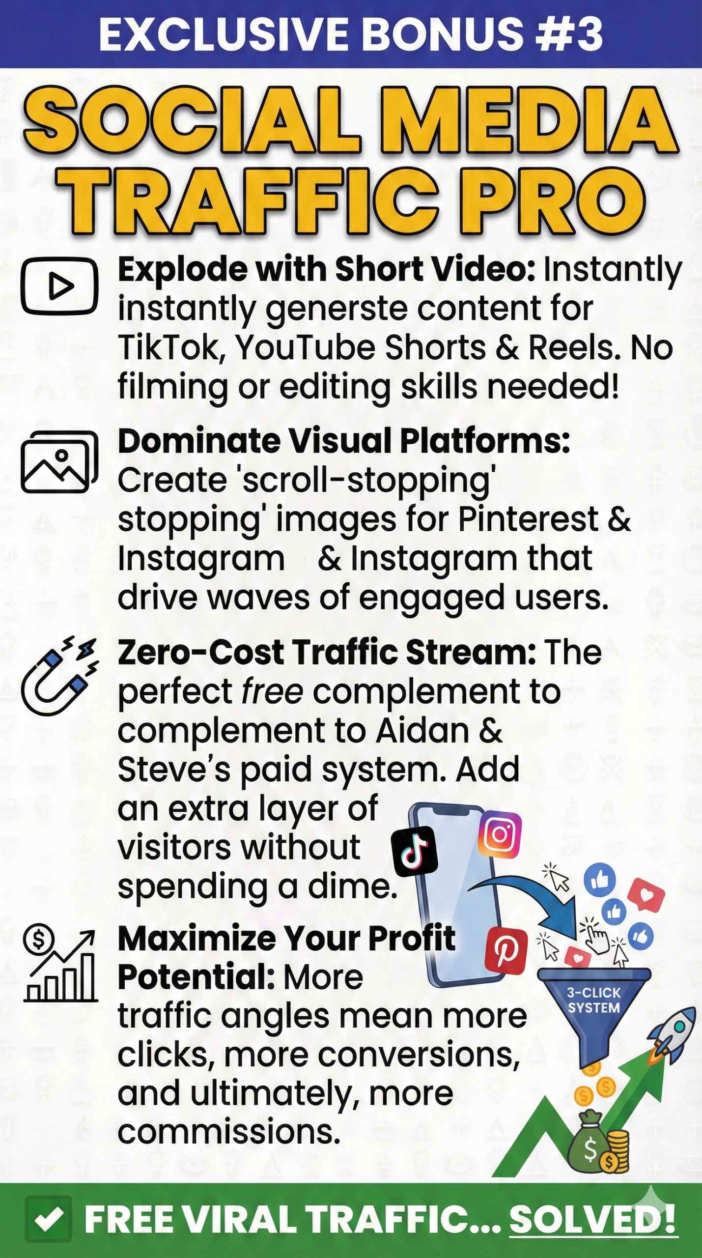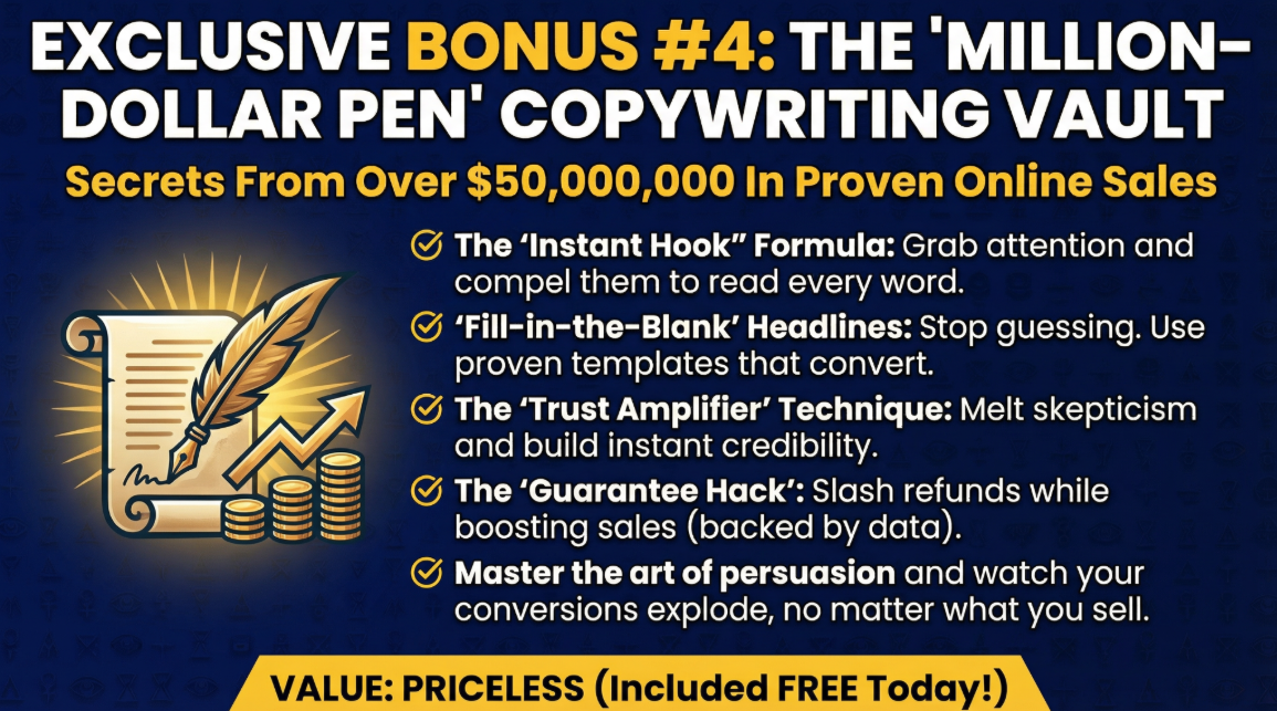 Aside from the extremely powerful program '3 Click Commissions', You'll be getting my VIP Edition Exclusive Bonuses